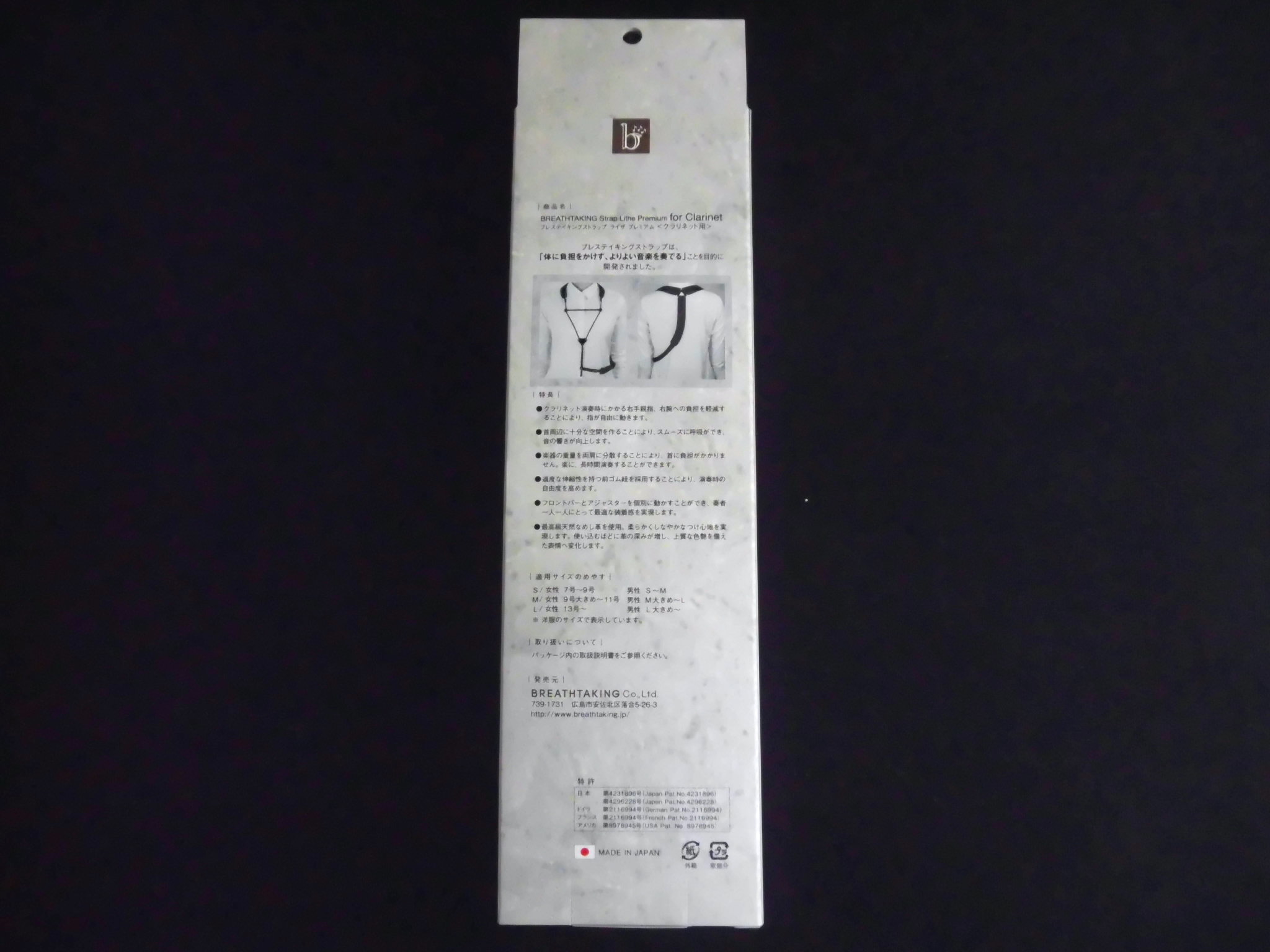 ブレステイキングは、フロントバーと補助ストラップを含む形状で特許を取得しています。